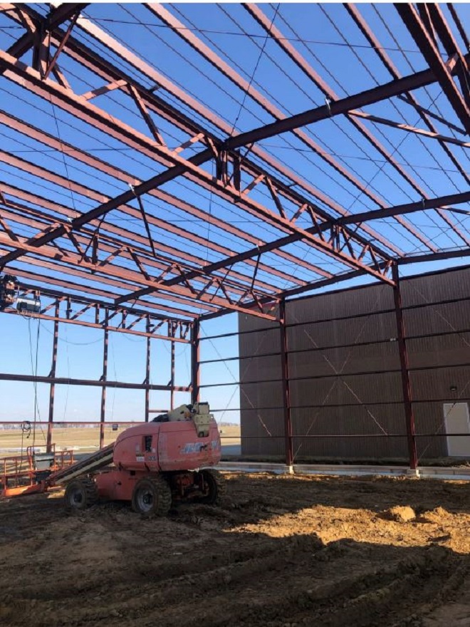 “Tricon provided consistent progress on the project as weather and material availability allowed. Beginning with foundations shortly after the notice to proceed in fall of 2022 to building erection beginning the day after the structure arrived in spring 2023, Tricon and its subcontractors advanced the project efficiently by providing the required attention to detail. During construction, the Platteville Municipal Airport (PVB) decided to add preparations for future in-floor radiant heat and enhanced drainage facilities around the hangar. Tricon and its subcontractors quickly provided change order pricing and incorporated these additions into the project without delay to any elements of construction. The PVB Commission was regularly consulted regarding subjective elements of construction and the final product is a box hangar the Airport is proud to show off to the community.”